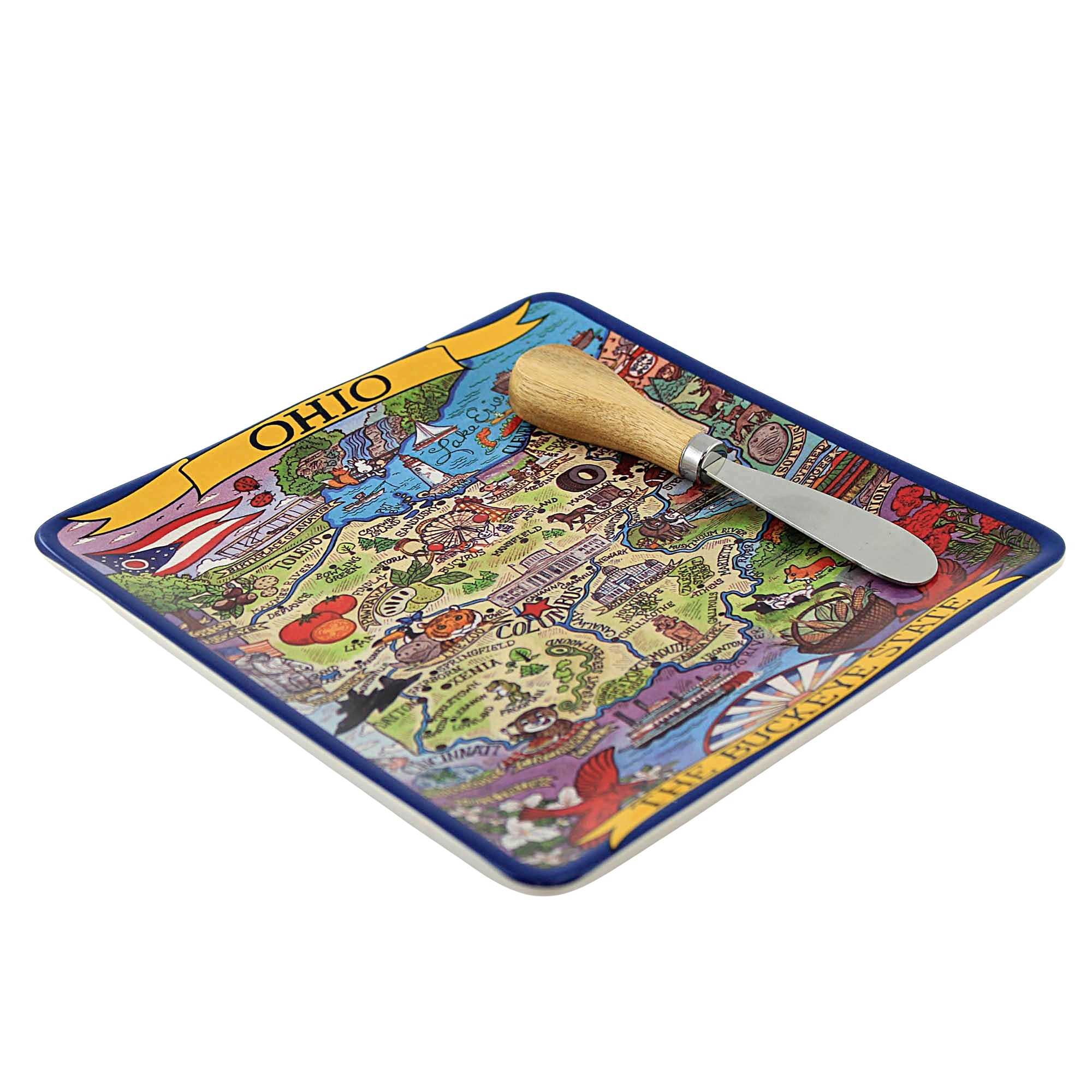 Tabletop Ohio Souvenir Cheese Plate Ceramic Buckeye State Spreader 63735 Walmart Com